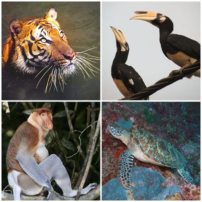 Малайзия — страна с высоким уровнем биоразнообразия и большим количеством эндемиков. На территории страны встречается около 20 % всех известных в мире видов животных[27]. Особенно высокий уровень эндемизма характерен для горных лесов Калимантана. В Малайзии встречаются около 210 видов млекопитающих, 250 видов рептилий (из них около 150 видов змей и 80 видов ящериц), около 150 видов лягушек и тысячи видов насекомых. На территории одной только полуостровной части страны встречается около 620 видов птиц.