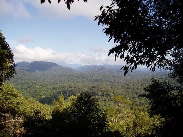 Полуостровная часть составляет около 39,7 % от общей площади Малайзии и простирается на 740 км с севера на юг и на 322 км с запада на восток (в самом широком месте). Через центральную часть полуострова проходит горный хребет Титивангса; высочайшая точка полуострова — гора Гунунг-Тахан (2187 м над уровнем моря). Береговая линия полуостровной части страны составляет 1931 км, удобные бухты имеются только на западном побережье. Восточная часть страны составляет 60,3 % от общей площади, имеет береговую линию длиной 2607 км. Между штатами Саравак и Сабах проходит горный хребет Крокер, где находится самая высокая точка страны — гора Кинабалу (4095 м)[19]. Горные хребты тянутся также вдоль границы с Индонезией. Между двумя частями страны расположено множество принадлежащих Малайзии островов, самым крупным из которых является Банги.