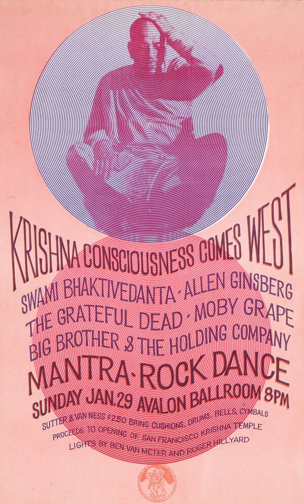 Стремясь собрать средства для поддержания храма, а также распространить учение Прабхупады среди хиппи Хейт-Эшбери, Мукунда, Мелани и Сэм решили организовать благотворительный рок-концерт Mantra-Rock Dance с участием своего гуру и известных калифорнийских музыкантов и исполнителей.[18] Так как Спирста был лично знаком с менеджером Grateful Dead Роком Скалли, и гитаристом Big Brother and the Holding Company Сэмом Эндрю, ему не составило большого труда добиться участия в концерте этих известных калифорнийских музыкальных коллективов.[19][20] В ходе подготовки к мероприятию, Мелани узнала о существовании ещё никому не известной в то время группы Moby Grape и убедила Мукунду и Сэма позволить им выступить на концерте.[21] После участия в Mantra-Rock Dance, в карьере Moby Grape произошёл крупный прорыв: в том же году они дважды сыграли вместе The Doors и подписали контракт с Columbia Records.[22]