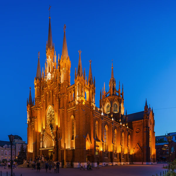 - № 27 — Католический Собор Непорочного Зачатия Пресвятой Девы Марии, самый большой католический собор в России[2]. В 1894 совет католической церкви в Милютинском переулке обратился к московскому губернатору с просьбой разрешить строительство третьего католического храма. Разрешение было получено при условии строительства вдалеке от центра города и особо почитаемых православных храмов, без башен и наружных изваяний. Неоготический проект архитектора Ф. О. Богдановича-Дворжецкого, рассчитанный на 5000 молящихся, был утверждён, несмотря на явное несоблюдение последнего условия. Храм был освящён в 1911 году, работы продолжались вплоть до 1917 года; ограда собора сооружена в 1911 году по проекту архитектора Л. Ф. Даукша. На установку органа и роспись куполов у общины недоставало денег; вместо этого был установлен жестяной голубь, символ Святого духа. Храм был закрыт в 1930-х годах и впоследствии изуродован внутренними бетонными перегородками. Реставрация проведена в 1996—1999 годах.