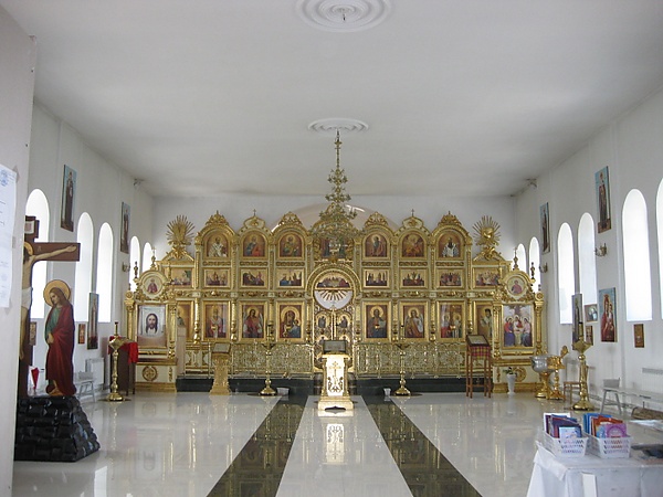 Храм каменный с таковою же колокольней, тёплый с тремя печами, крыша крыта железом, на крыше 4 главы и 3 на колокольне, 5 колоколов: 120 пудов 39 фунтов, 31 пуд 8 фунтов, 5 пудов и два чуть более пуда. При церкви имелась небольшая сторожка для караула. Работала библиотека для духовных лиц.