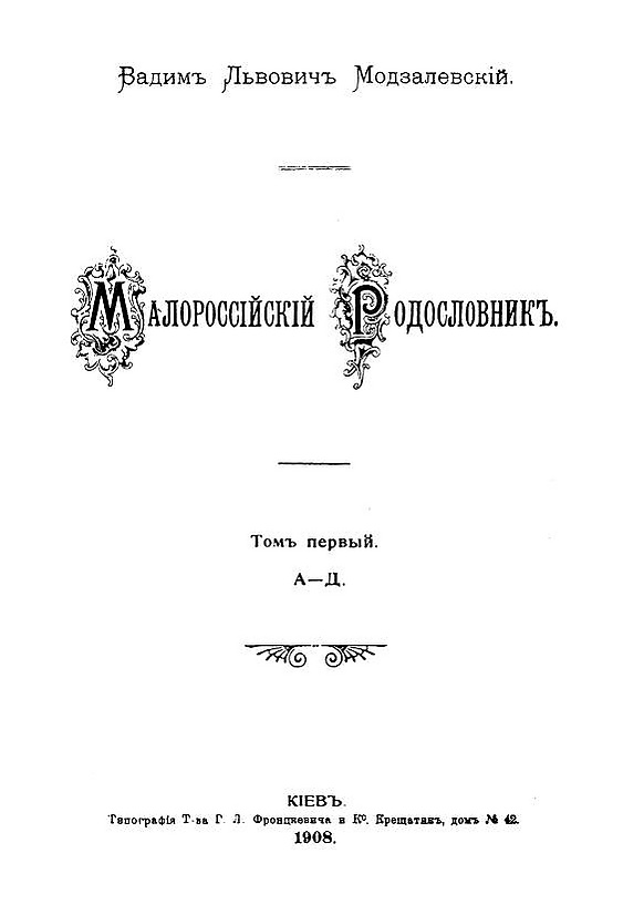 Модзалевский В. Л. Малороссийский родословник. — Т. 1. — Киев, 1908.
