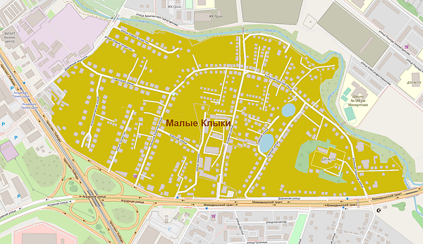 В Малых Клыках находятся дома с адресацией по 10 улицам и одному переулку. Также в посёлке есть ещё одна улица, которая не имеет домовладений (улица Зажора).