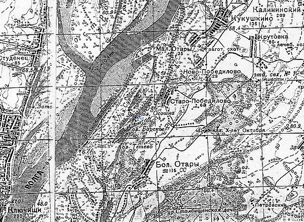 Также в материалах IV ревизии (1781 год) в районе между рекой Волгой и Зюрейской дорогой перечислены три деревни, населённые дворцовыми крестьянами — Деревня Кокушкина, Деревня Средние Отары и Деревня Победилова, после чего указано: «сии три селения при речке Ичке и озёрах»[7].