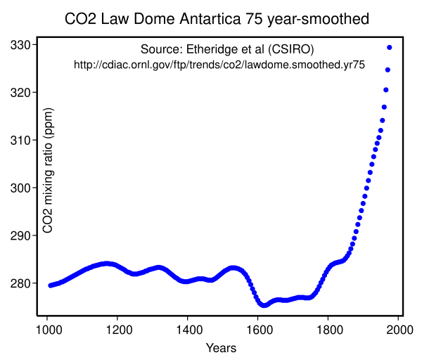 В долине Сипл (SD) произошло климатическое событие, время начала которого совпадает со временем Малого ледникового периода в Северной Атлантике, согласно корреляции с данными GISP2. Малый ледниковый период является наиболее драматических климатических событий на запись SD-голоцена glaciochemical.[119] в Сипл купола ледяного керна также содержащиеся самого высокого уровня расплава слои (до 8 %) между 1550 и 1700, скорее всего из-за тёплым летом.[120] закон купола кернов льда показывают более низкие уровни CO2 соотношения от 1550 до 1800, что Этеридж и Стил считают «вероятно, в результате холоднее глобального климата»[121]