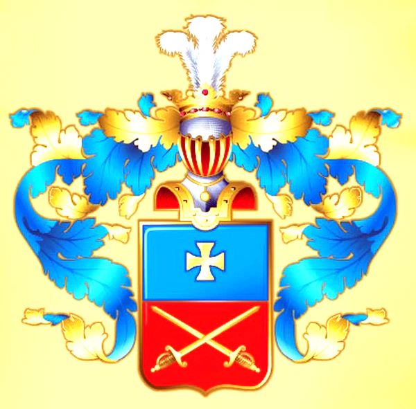 Щит разделён горизонтально на две части, из коих в верхней в голубом поле изображён золотой крест. В нижней части в красном поле крестообразно положены две золотые шпаги, остриями вверх (изм. польский герб Пелец).