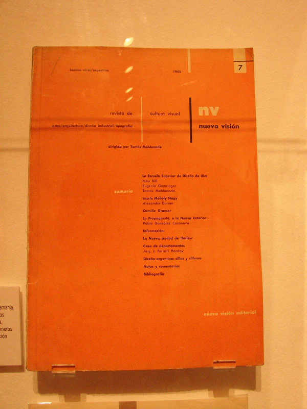 По возвращении в Аргентину Мальдонадо, ставший убеждённым сторонником швейцарской школы «конкретного искусства», опубликовал в 1949 году в журнале «Cea» статью «Промышленный дизайн и его социальное значение», поясняющую понимание автором целей работы дизайнеров как создание не только красивой, но и целесообразной, «качественной» формы, что отличает «честное» формообразование от стилизации. В 1951 году он стал редактором журнала, посвященного искусству, дизайну, архитектуре и типографии, под названием «Nueva Visión». В этом журнале Мальдонадо опубликовал ряд своих статей, посвященных «конкретному искусству» и «реальному формообразованию».[3]