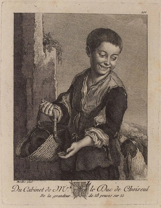 В 1771 году, перед аукционом Шуазеля, с «Мальчика с собакой» К. В. Вейсбродом была снята гравюра (в зеркальном отображении), опубликованная в описи собрания Шуазеля под №100[7]. В 1793 году с картин Я. Якимовичем были сняты копии для Императорской шпалерной фабрики в Санкт-Петербурге; дальнейшая судьба этих копий неизвестна, равно неизвестно были ли вытканы по ним шпалеры[4]. На протяжении XIX века с «Мальчика…» было снято еще несколько гравюр, как отдельных листов, так и так и опубликованных в изданиях, посвящённых Эрмитажу. По одной из таких гравюр Э. Мане сделал свою гравюру и затем, около 1861 года, на сходный мотив написал небольшую картину «Мальчик с собакой» (холст, масло; 19 × 17 см, в начале XX века находилась в частной коллекции в Париже, дальнейшая судьба картины не установлена)[8][4].
