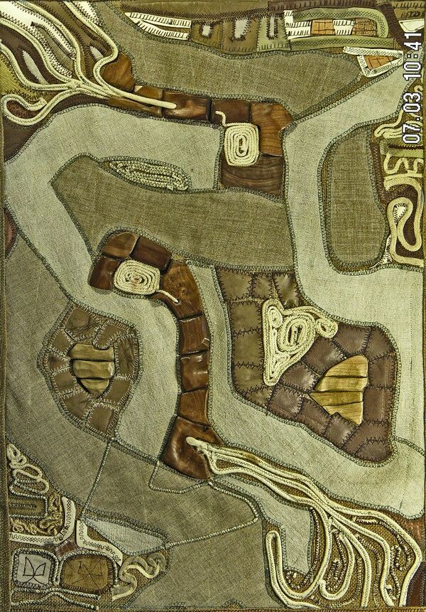 Символические свитки Константина Мамаева — попытка вернуть символ в тело, овеществить его. В пределах одного и того же свитка символ, чаще всего свастика, выполняется как верёвочный контур, как аппликация из кожи, как деревянный рельеф. Так создаётся вещная перспектива или материальный путь символа и тем самым восстанавливается его стёршийся сакральный смысл.