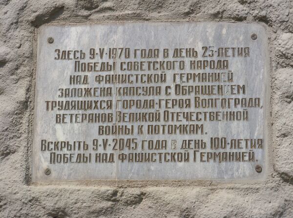 - На Мамаевом кургане в день 25-летия Победы заложена капсула с обращением участников войны к потомкам, которая должна быть вскрыта 9 мая 2045 года на 100-летие Победы[19].