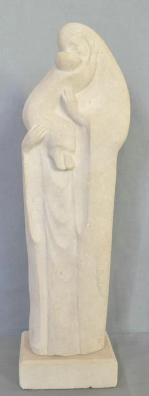 Скульптура представляет собой трёхмерное изображение стилизованной фигуры женщины. Фигура изображена в длинном ниспадающем одеянии с покрытой головой. Женщина держит на руках босоногого ребёнка, одетого в длиннополую рубаху. Ребёнок прижат лицом к матери и обнимает её за шею. Изделие установлено на прямоугольном постаменте из известняка. Общий размер экспоната составляет 51,0х13,5х10,0 см.
