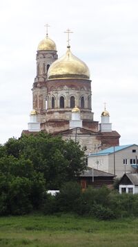 В XVIII веке возведена первая деревянная церковь, построенная под руководством священника В. И. Мамина. Позднее, в XIX веке, на месте деревянного началось строительство каменного храма на средства прихожан. Был заложен в ознаменование победы в Отечественной войне 1812 года, позднее около Храма установили монумент Александру II Освободителю в честь отмены крепостного права. Строительство было завершено к 1871 году, является ярким образцом церковных построек в формах эклектики. Главный храм во имя Архангела Михаила, освящен 8 ноября 1835 года. Правый придел во имя мучеников Флора и Лавра, освящен 18 августа 1871 года. Левый придел во имя свт. Митрофана, епископа Воронежского, освящен 23 ноября 1876 года.