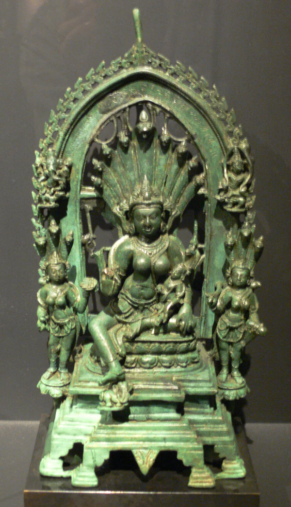 Манаса также является символом плодородия и процветания. Манаса — сестра царя нагов Васуки и жена мудреца Джагаткару.[2] Она также известна под именами Вишахара (разрушительница яда), Джагатгаури, Нитья (вечная) и Падмавати.[3]