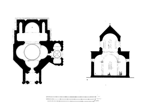 В своём плане Манглисский собор является тетраконхом, перекрытым куполом на восьмиугольной барабане. Он имеет два входа — западный и южный. Западный вход пробит в центре апсиды. Южный вход асимметричный, его арка смещена к западной стене. Собор имеет естественное освещение, для этого в барабане его купола пробиты узкие окна. Восточное крыло здания вытянутое и соединено с центральным объёмом собора переходом. Алтарь и средокрестие находятся в восточной части храма. Алтарь отделён от основной части храма иконостасом из древесины ореха. Манглисский собор венчает центральный купол, опирающийся на три арки — северную, западную и южную. Купол имеет коническую форму, покрытый (как и другие части кровли) черепицей, завершён железным крестом, который датируют XIX веком[1].