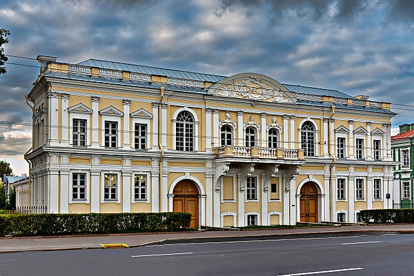Здание построено в 1756[1][2] (1757[3])—1759 годах под руководством И. Борхарда. Обращённый на набережную лицевой корпус двухэтажный, к нему, образуя в плане подобие буквы Т, примыкает одноэтажный корпус, вытянутый в глубину участка[3].