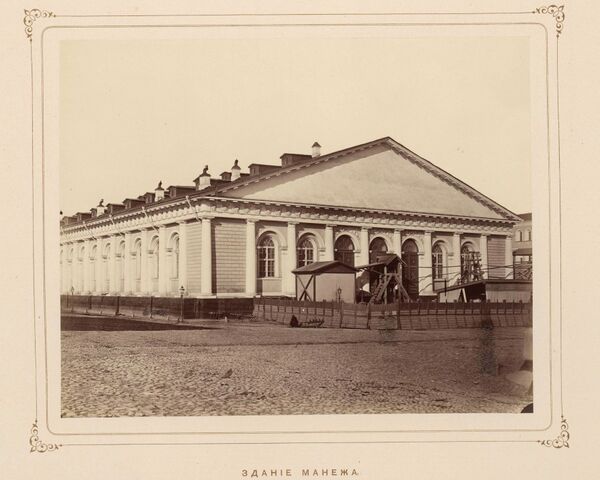 Первое время после открытия в Манеже размещались конюшни и проводились военные смотры, парады и учения. Но поскольку император большую часть времени проводил в Петербурге, и основные военные мероприятия организовывались там, уже с 1831 года в московском Манеже стали регулярно устраиваться концерты и выставки[21][19]. Например, в 1867 году композитор Гектор Берлиоз совместно с пианистом-виртуозом Николаем Рубинштейном дирижировал в Манеже оркестром и хором из 500 человек в присутствии 12 тысяч зрителей[22]. В 1865—1867 годах в здании проходила этнографическая выставка, демонстрировавшая повседневный быт народов России с помощью фигур из папье-маше, одетых в национальные костюмы. По некоторым данным, выставку посетил император Александр II, однако выставляемые фигуры ему не понравились, и он вскоре покинул Манеж[23]. В 1872 году в Манеже проводилась Политехническая выставка, а в 1879-м — антропологическая[24].