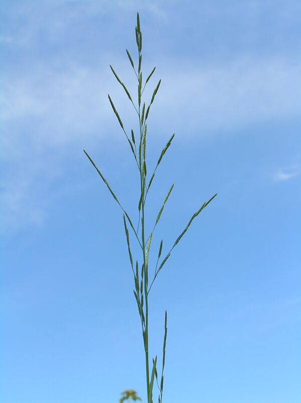 Колоски собраны в метёлки, на одной её веточке обычно по 3—4 узкоцилиндрических бледно-зелёных колоска 8—15 мм длиной. Веточки немного шероховатые, слабо отогнутые от оси метёлки. Колосковые чешуи яйцевидные, 1,5—3,5 мм длиной. Нижние цветковые чешуи с плёнчатым закруглённым концом, 3,5—5 мм длиной. Тычинки в числе трёх, с жёлтыми пыльниками 0,8—1,4 мм длиной.