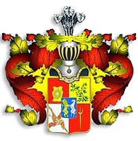 Описание герба: Выдержка из Общего гербовника Щит разделён на четыре части. В первой и четвёртой в красном поле золотые кираса и шпага. Во второй в золотом поле две лавровые ветви. В третьей в серебряном поле два знамени. В середине щиток с изображением в голубом поле золотого льва и серебряного единорога. Щит увенчан обыкновенным дворянским шлемом и страусовыми перьями. Намёт на щите красный, подложен золотом. |