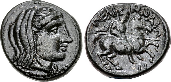 Из Дельф она была отправлена Аполлоном в Колофон, чтобы основать там святилище бога, и вышла замуж за Ракия, от которого родила прорицателя Мопса[7] (либо отцом Мопса называется Аполлон[8]). Основала храм и оракул Аполлона в Кларосе[9].