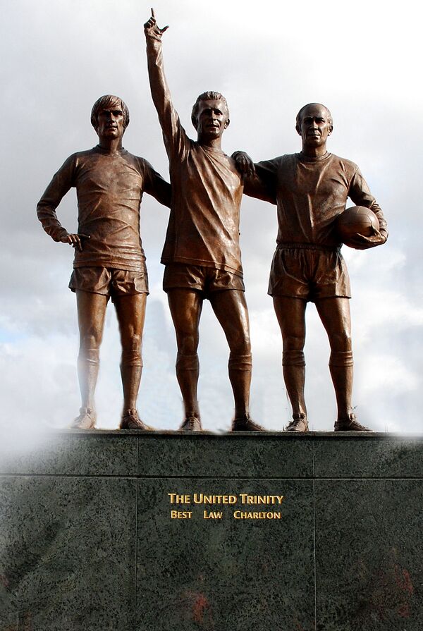 В начале 1960-х Басби начал перестройку команды, подписав таких игроков, как Денис Лоу и Падди Креранд, одновременно продолжая искать и воспитывать молодых футболистов. Cамым известным и талантливым из них стал уроженец Белфаста Джордж Бест. Обновлённая молодыми игроками команда Басби выиграла Кубок Англии 1963 года, хотя в Первом дивизионе финишировала лишь на 19-м месте[41]. Уже в сезоне 1963/64 «Юнайтед» занял 2-е место в чемпионате, а в сезонах 1964/65 и 1966/67 становился чемпионом Англии[41]. В 1968 году «Манчестер Юнайтед» вышел в финал Кубка европейских чемпионов, в котором обыграл португальскую «Бенфику» со счётом 4:1, став первым английским клубом, выигравшим этот главный европейский футбольный турнир[42]. Три игрока из того состава «Юнайтед» выиграли «Золотой мяч»: Бобби Чарльтон, Денис Лоу и Джордж Бест[43]. Их стали называть «Троицей „Юнайтед“» (United Trinity)[44]. В 2008 году в их честь был открыт памятник у стадиона «Олд Траффорд»[45].