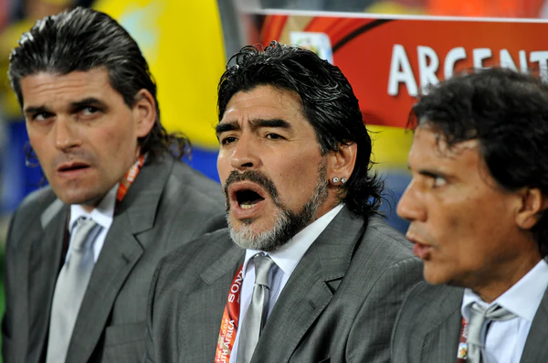 На чемпионате в Южной Африке аргентинцы выиграли все три матча группового этапа, прошли в 1/8 финала Мексику, однако в четвертьфинале потерпели одно из самых крупных своих поражений в истории мировых первенств — со счётом 0:4 от Германии[29]. Марадона долго переживал из-за проигрыша и рассматривал возможность ухода из сборной. Тем не менее, руководство положительно оценивало его работу, и большинство болельщиков хотели, чтобы он остался. Однако в итоге аргентинская футбольная ассоциация отказалась продлевать контракт, на что Марадона резко отреагировал, назвав чиновников обманщиками и предателями. Одной из возможных причин прекращения сотрудничества стало то, что руководство собиралось полностью заменить персонал команды, в то время как Марадона был категорически против увольнения коллег[30][31].