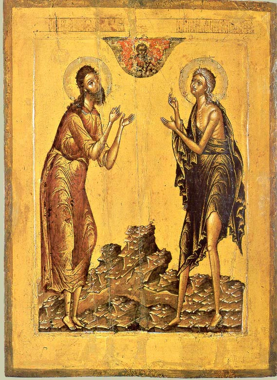 Кондак (третий глас): Блудами первее преисполнена всяческими, Христова невеста днесь покаянием явися, Ангельское жительство подражающи, демоны Креста оружием погубляет. Сего ради Царствия невеста явилася еси, Марие преславная.