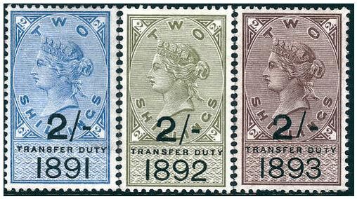Примеры фискальных марок, изготовленных по колониальному типу