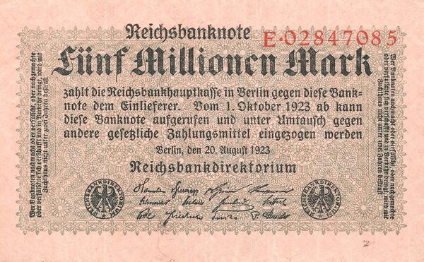 Во время Веймарской республики денежная система страны характеризовалась сильной инфляцией. Её курс упал до 4200 млрд марок за 1 долл. США. В ходу с 1919 по 1923 г. были так называемые бумажные марки (Papiermark) с очень большой номинальной стоимостью. В октябре 1923 г. на смену бумажной марке пришла рентная марка (Rentenmark), приравненная к триллиону прежних марок. Уже в 1924 г. валютой в Германии стала рейхсмарка (Reichsmark, «державная марка»). Официальный курс рентной марки и рейхсмарки к доллару США с 1923—1924 гг. поддерживался на уровне паритета 4,2 марки, а после девальвации доллара в 1934 г. — 2,5 марки за 1 доллар. С некоторыми изменениями она просуществовала до обмена 21 июня 1948 г. в западных зонах Германии и до 23-го июня — в восточных вместе с введёнными в сентябре 1944 г. марками Союзного военного командования (обменный курс 1 марка = 50 коп., 10 марок = 1 долл. США)- купюры в 50 пф., 1, 5, 10, 20, 50, 100 и 1000 марок.