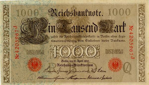 После образования единой Германской империи в 1870 марка, делящаяся на 100 пфеннигов, была введена в качестве единственной валюты на территории этого государства. Впрочем, талер вышел из употребления не сразу — он ходил в Германии до 1907 г. Кроме того, в относительно независимой Баварии имел хождение геллер. Марка содержала 0.358423 г. чистого золота. Эмиссию банкнот в марках осуществлял Рейхсбанк и четыре государственных банка (Баварский, Баденский, Вюртембергский и Саксонский). С 4 августа 1914 г., сразу после начала первой мировой войны, размен банкнот на золото был прекращён.