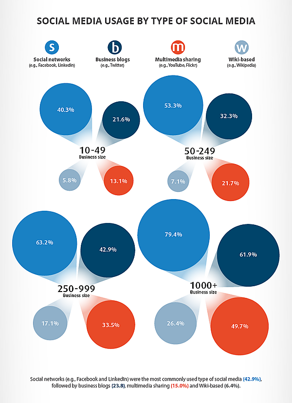 В России 78 % предпринимателей из малого бизнеса считали соцсети эффективным каналом для привлечения клиентов. Самой популярной платформой у малого бизнеса была «ВКонтакте» (49 %), за ней следовали «Одноклассники» (22 %) и Facebook (11 %)[17].