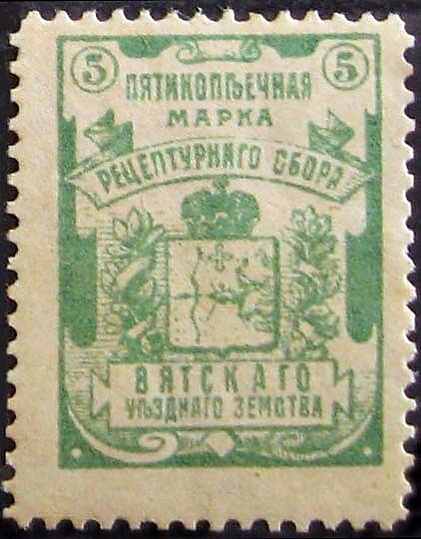 Достаточную свободу в выпуске фискальных марок имели земские управы, хотя пользовались этим достаточно редко. Некоторые земства выпускали так называемые марки рецептурного сбора. Доходы от рецептурного сбора шли на оплату работы приема ветеринаров (Нолинск) и врачей. Подобные марки выпускались, например, в Вятском, Котельническом и Нолинском уездах[3].