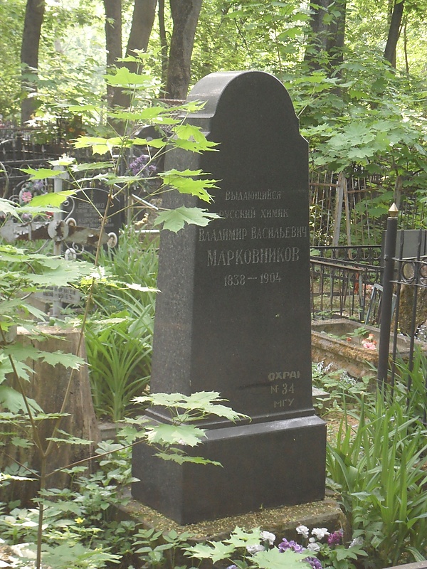 Марко́вников Влади́мир Васи́льевич (10 (22) декабря 1838[1] или 1837, д. Черноречье, Нижегородская губерния — 29 января [11 февраля] 1904, Москва) — русский химик, представитель Казанской химической школы, основатель собственной научной школы в Московском университете. Развивая теорию химического строения А. М. Бутлерова, исследовал (1869) взаимное влияние атомов в органических соединениях и установил ряд закономерностей (в том числе правило присоединения галогеноводородов к непредельным углеводородам с двойной и тройной связью, впоследствии названное его именем). Открыл изомерию жирных кислот (1865). С начала 1880-х гг. исследовал кавказские нефти, открыл нафтены. Содействовал развитию отечественной химической промышленности. Один из организаторов Русского химического общества (1868). Отец архитектора Н. В. Марковникова.