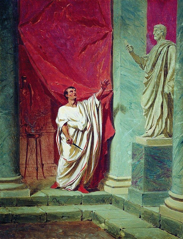 В живописи XVIII—XIX веков была популярна тема убийства Цезаря. Сформировалась даже своя традиция, в которой работали Бенинь Ганьеро, Вильгельм фон Каульбах, Винченцо Камуччини, изобразивший сцену убийства как противостояние Цезаря и Брута (1798 год). Свой вклад в традицию сделали Жан-Леон Жером (около 1860 года) и Карл Теодор фон Пилоти (1865 год), чья картина стала наиболее известным изображением данного сюжета[366].
