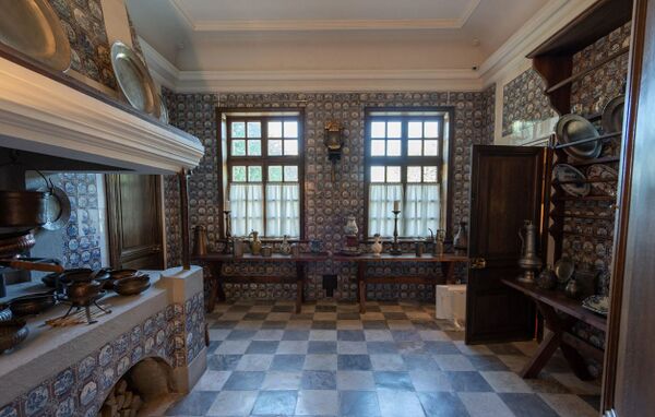 - В период реставрации 1970-х годов А. Гессен и Б. Мицкевич разработали технологию изготовления изразцовых плиток, аналогичных керамике XVIII века, и метод росписи изразцов обжиговыми красками[2].