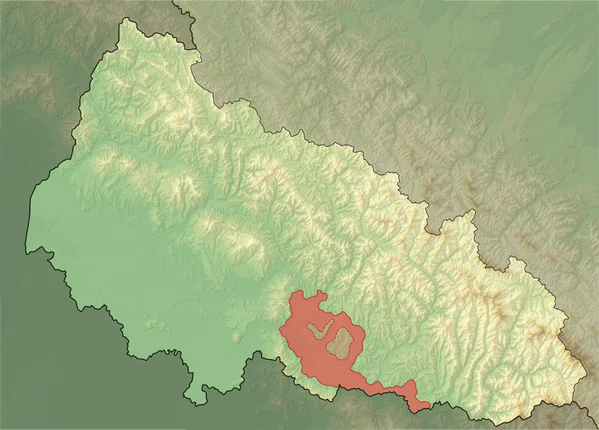 Размер котловины: длина — 42 км, ширина — 24 км. Средняя высота 200—400 м, максимальная — 758 м. Геоструктурно связана с Закарпатским прогибом. Состоит из песчано-глинистых пород, конгломератов и вулканических туфов. Распространен соляной карст. Полезные ископаемые: полиметаллы, каменная соль, природный газ, строительные материалы и минеральные воды.