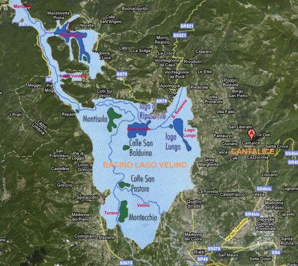 Около 100 тысяч лет назад река Велино впадала в Неру, но по мере того как Нера углубляла свою долину, обогащённые карбонатом кальция воды Велино, напротив, сформировали огромную травертиновую пробку на границе с долиной Неры[5]. Вследствие этого в долине Риети образовалось крупное озеро[6]. В результате многолетних колебаний его уровня появились обширные водно-болотные угодья, из-за чего местное население, сабины, страдало от малярии.
