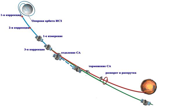 - доставка СА в околопланетную область и обеспечение требуемых условий по баллистике для проникновения СА в атмосферу Марса;