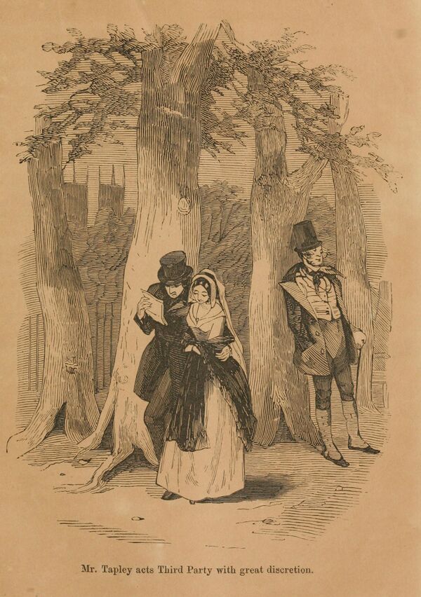 - Миссис и мистер Спотлтоу — племянница Мартина-старшего и её муж. Надеются на наследство; в финале книги присутствуют при позоре Чарити, от которой сбежал жених.