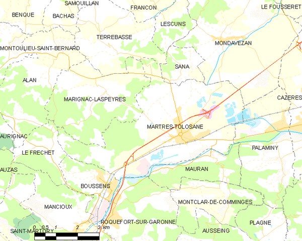 По территории коммуны протекает река Гаронна и проходит канал Сен-Мартори.
