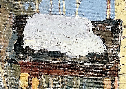 Мажорный, жизнеутверждающий мотив картины показывает борьбу уходящей зимы и наступающей весны, солнечного света и холодного снега. Это подчёркивается цветовым контрастом между тёмными соснами на заднем плане и светлыми, освещёнными солнечным светом стволами лиственных деревьев перед ними, которые своими ветками будто бы тянутся к весеннему солнцу[59][K 5]. В частности, это стремление вверх дополняется необычно высоким расположением скворечника на одном из деревьев, так что даже создаётся впечатление, что он приделан к слишком тонкой ветке[62]. Светлые стволы деревьев, расположенных слева и справа от центра полотна, как бы склоняются навстречу друг другу. Кажется, что всё находится в лёгком движении — и лиственные деревья, и сосны, и приоткрытая дверь, частично покрытая тенью, и лежащая рядом с крыльцом ставня[63]. Горизонтальный край заснеженного поля, простирающегося до дальних хвойных деревьев, делит картину на две примерно равные части и «вносит в неё нотку спокойствия»[58]. Оттенки снега, синие тени деревьев и голубое небо создают очень живописную картину — подобный сюжет не раз потом повторялся в пейзажах других русских художников[13].