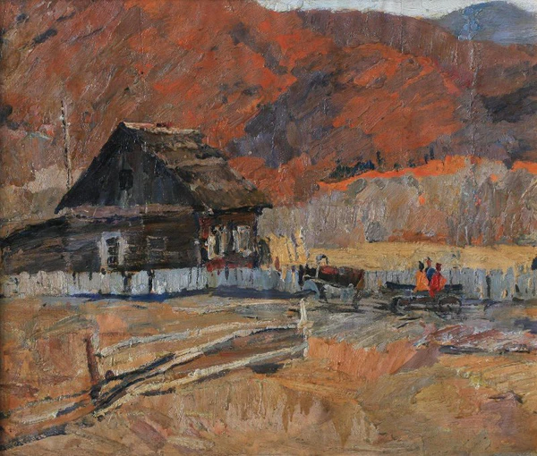 Композиция картины построена по диагонали, ведущей к нижнему левому углу (композиция (изобразительное искусство)). На переднем плане изображены дома, на крыше одного из которых лежит снег. Перед домами видна талая вода, отражающая переходный сезон. За строениями располагаются сопки, а небо покрыто тёмными облаками, что придаёт сцене мрачную атмосферу.