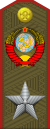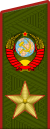 Большая золотая звезда на красных петлицах, из нижнего угла петлицы, вышитые золотой нитью лавровые ветви с серпом и молотом в центре. На рукавах — большая золотая звезда, окаймлённая красным кантом, и один угольник из красного сукна, посредине которого вышит узор, а по обе стороны — золотое шитьё с красной окантовкой.