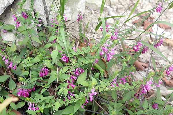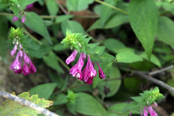 Цветки многочисленные, на цветоножках 1 мм длиной, обращённые в одну сторону, в прерывистом соцветии, 5—13 см длиной и 1,5 см шириной. Прицветники овальные или продолговатые, зелёные или более-менее пурпуровые, 2 см длиной, 1 см шириной, нижние цельнокрайные или иногда почти зубчатые, верхние большей частью шиловидно длиннозубчатые, зубцы 1—2 мм длиной, искривлённые, расставленные. Чашечка 3 мм длиной, с трубкой 1,5 мм длиной, опушённой и по жилкам шероховатой или длинно реснитчатой, покрытой многоклеточными белыми волосками и с треугольно-ланцетными зубцами, почти равными или немного превышающими трубку, острыми или шиловидно заострёнными, почти серповидными. Венчик тёмно-розовый, 1,5 см длиной, рассеянно мелко опушённый; верхняя губа короткая, сжатая, без зубцов; нижняя губа едва длиннее, трёхлопастная, все лопасти округлые, средняя немного меньше остальных. Тычинки с пыльниками 3,5 мм длиной, с маленькими, почти равными, остроконечными придатками. Завязь яйцевидная, 2 мм длиной, 1 мм шириной, голая. Столбик в 7 раз длиннее завязи, голый.