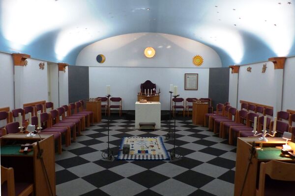 Закрытое помещение, где проводятся собрания масонских организаций. Как правило, оборудованные специальным образом: определённый пол, стены без окон, либо с закрытыми или закрашенными окнами, наличие алтаря и скамей. Возможно наличие органа либо других музыкальных инструментов. Не исключено, что собрание проводится в закрытой не оборудованной комнате, которая лишается тогда названия масонская ложа, а именуется комнатой для масонских собраний или масонских работ. Место, где находится ложа, называется Восток. Ложа также называется храмом[6].