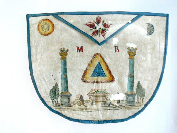 Старейший масонский запон хранится в ложе «Мелроуз», он состоит из фиксированных линий.
