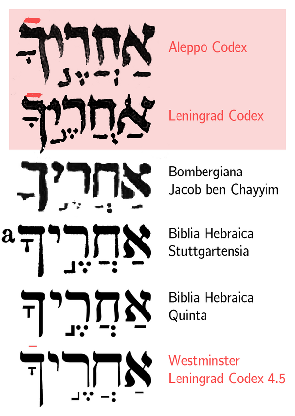 - Консонантный еврейский текст, снабжённый Масорой. Последняя включает в себя: