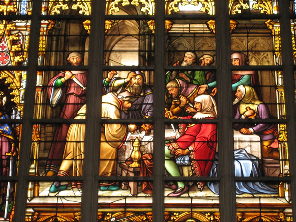 Император Карл V и Габсбурги, а также их родственники подарили семь витражей, на которых изображено чудо. Они были выполнены антверпенским стеклодувом Яном Хаком по творениям Бернарта ван Орлея и Михиля Кокси. Четыре витража сохранились и по сей день[12].