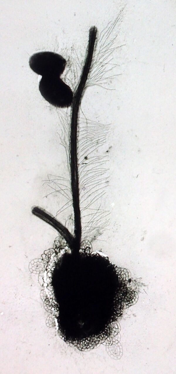 Мастигонемы впервые описал Фридрих Лёффлер в 1889 году у золотистой водоросли Monas. Он смог увидеть их в световой микроскоп благодаря окрашиванию препарата красителем для бактерий, который покрыл мастигонемы, сильно увеличив их толщину[20][12]. В 1894 году немецкий учёный Альфред Фишер, использовавший подобное окрашивание, обнаружил[21] подобные структуры и у ряда других организмов. Он ввёл названия Flimmergeisseln («ресничные жгутики») для жгутиков с придатками и Peitschengeisseln («жгутики-кнуты») для гладких; отсюда происходит название мастигонем Flimmer, которое вошло в употребление[20][22].