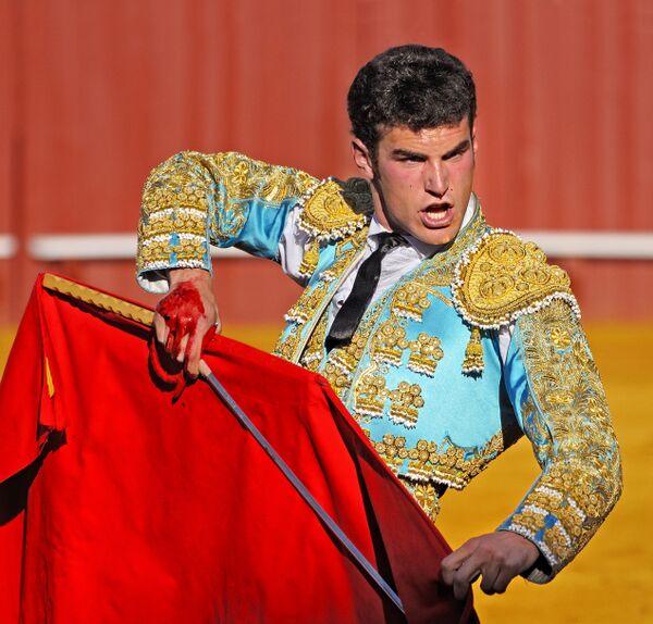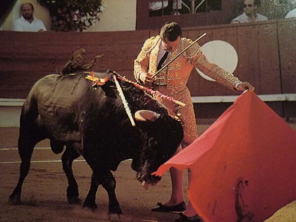 - Muleta: Ткань более лёгкая и меньше, чем капоте, красного цвета. Используется матадором в последней терции корриды чтобы сдержать и направить атаку быка.