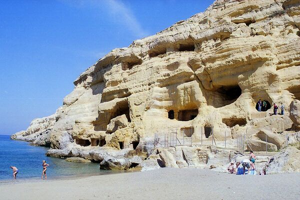 К югу от Маталы находится нудистский пляж «Red Beach».